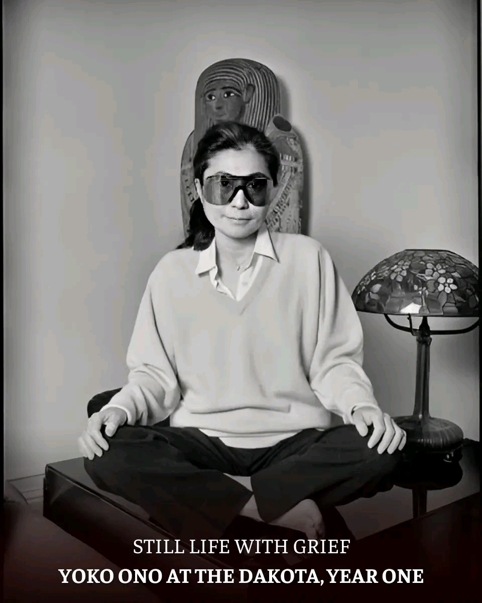On the morning of December 8, 1981, at precisely 11:47 a.m., the Dakota is unnaturally still. No murmuring crowds outside, no reporters, no commotion — just a winter hush settling over the old stone building like a shroud. Inside Apartment 72, Yoko Ono sits cross-legged on a black lacquered table, barefoot, wrapped in a white sweater, dark trousers, and the same oversized Porsche sunglasses she now wears everywhere, even indoors.
