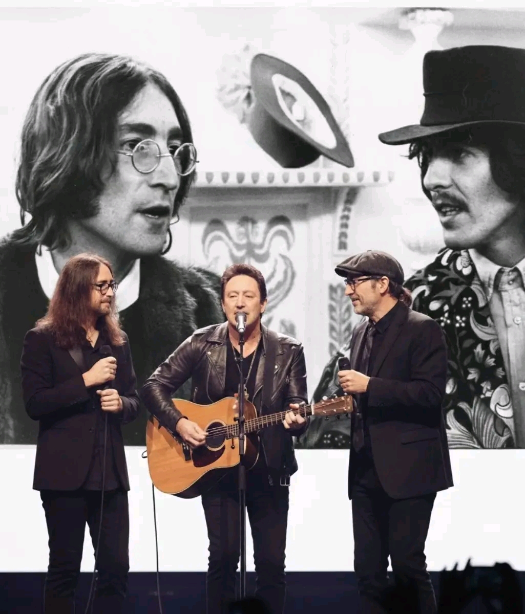 Standing side by side, the sons of John Lennon and George Harrison sang with a quiet restraint that made every note heavier. There was no showmanship, no attempt to imitate the past. Instead, there was inheritance — voices shaped by legacy, yet unmistakably their own.